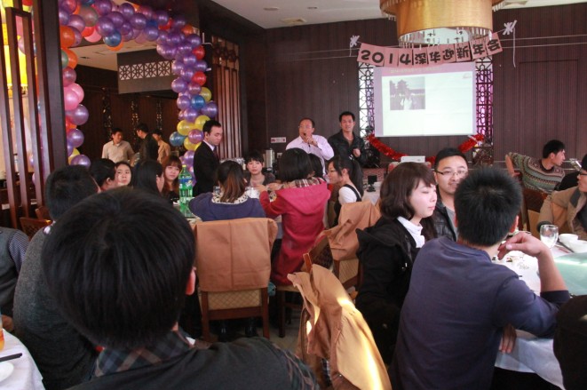 廣州市深華生物技術(shù)有限公司總經(jīng)理張清杰先生首先上臺(tái)致新年賀詞,張總回顧了我們深華公司2013年的心路歷程,肯定了2013年各部門的工作也分析了2013年的得失,同時(shí)感謝那些還奮斗在前線工地及各研究院校第一線而沒有趕來參加年會(huì)的同事們,廣州深華公司的發(fā)展離不開同事們的努力也離不開各位廠家和經(jīng)銷商的支持。