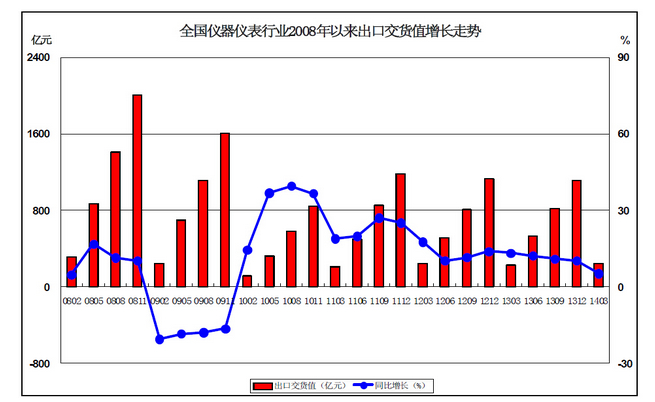 3、全國儀器儀表行業(yè)2006年以來出口交貨值增長比較